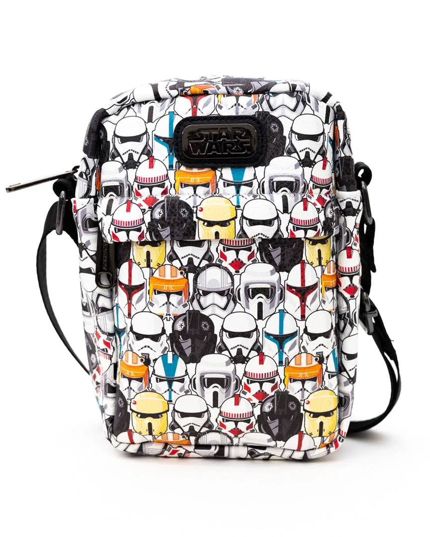 You’re going to love this Star Wars bag featuring Helmets of the Galaxy. This stylish and sleek cross body bag is made from premium vegan leather. It measures 8.0 x 6.5 x 2.0 Inches and features space to carry all your favorite things including phone, wallet, keys, etc. The gorgeous artwork is applied using the latest printing technology so it will hold up well over time. This product is made by Buckle-Down and is Officially Licensed by Star Wars.