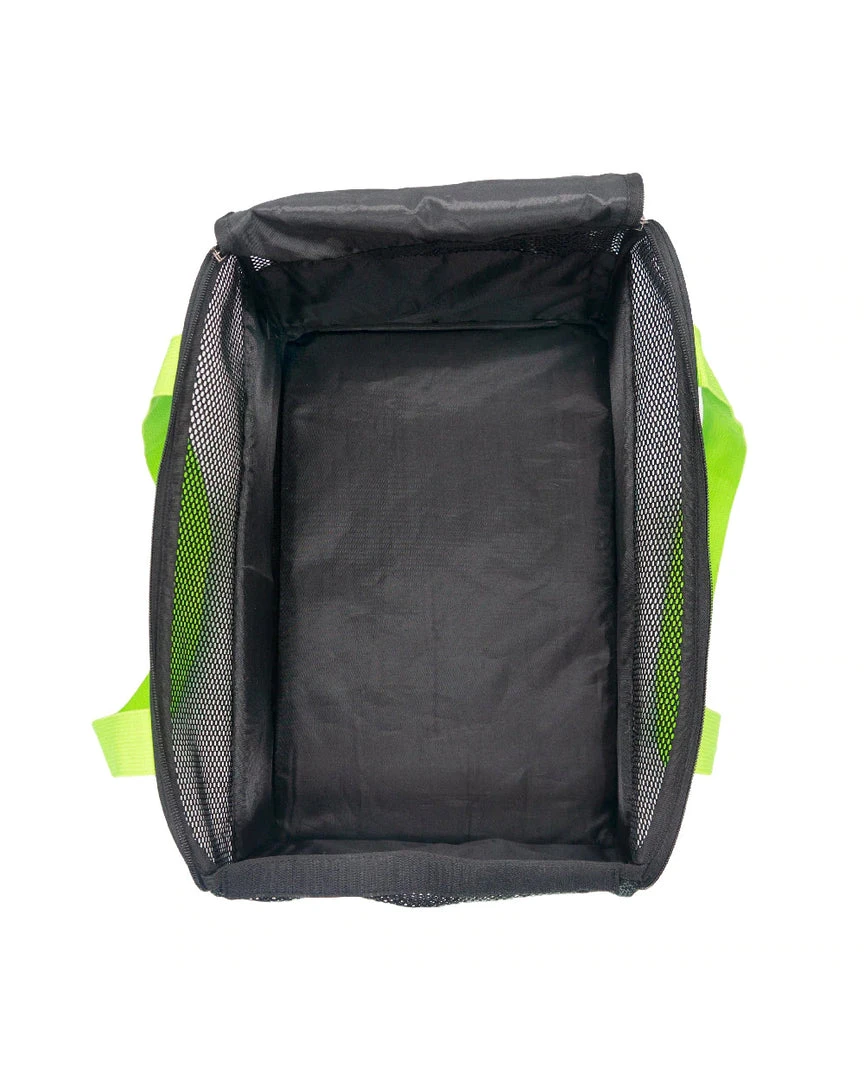 - The top entry is equipped with a U-shaped zipper and Velcro closure.
