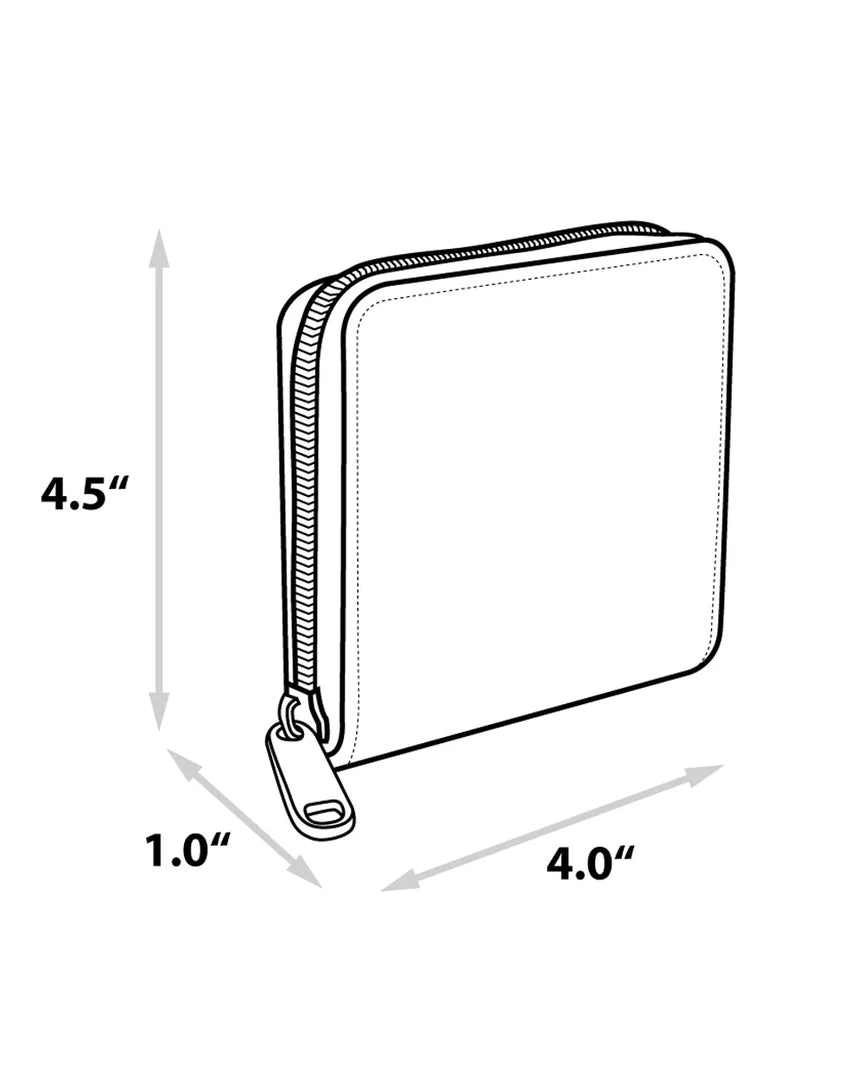 - It measures 4.5 x 4.0 x 1.0 Inches and features 2 billfolds, 4 card slots, and 1 coin zipper.