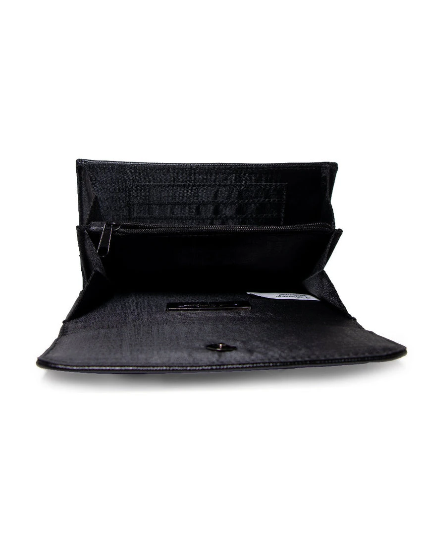 - Stylish and sleek this fold over wallet is made from premium vegan leather.