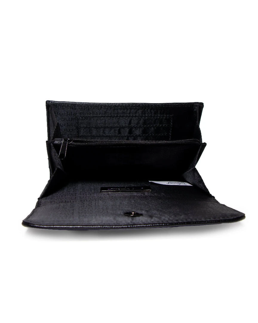 - Stylish and sleek this fold over wallet is made from premium vegan leather.