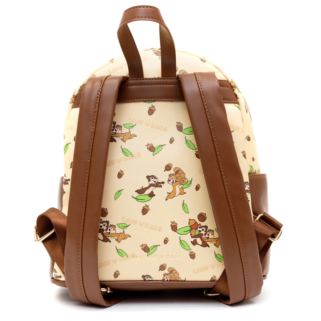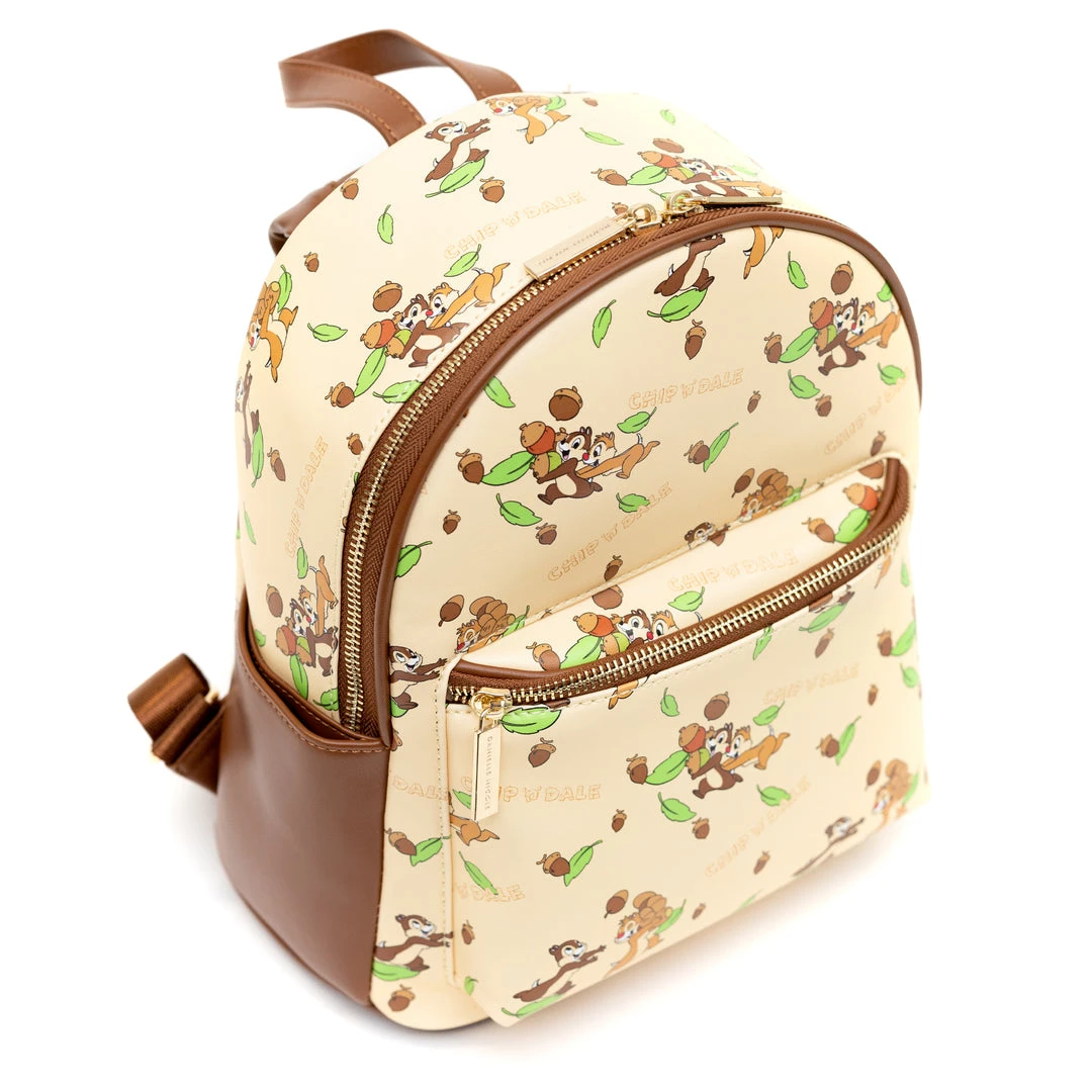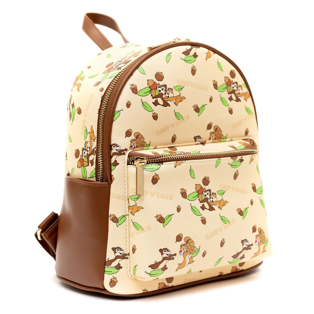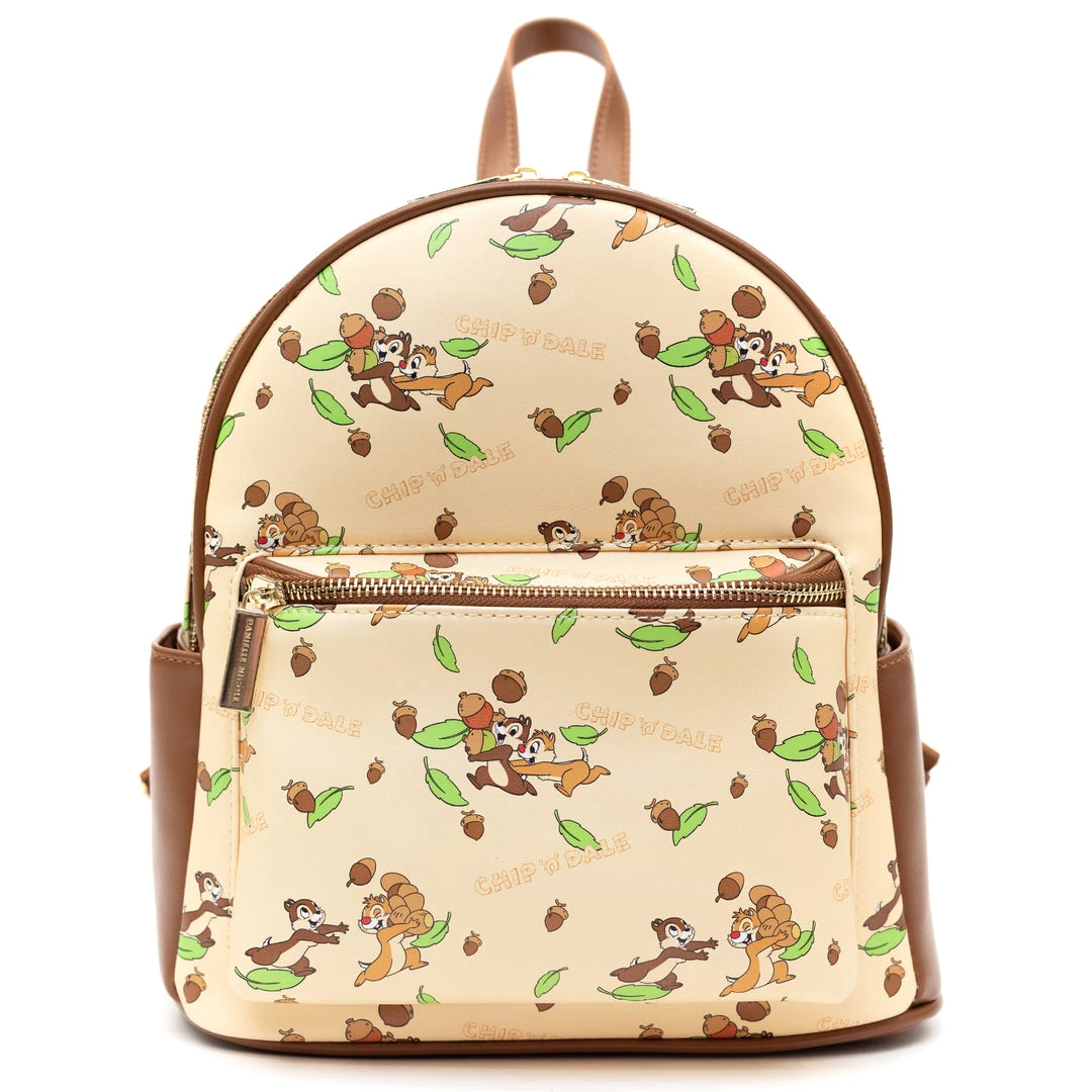 - You’re going to love this cute backpack featuring Disney Chip and Dale This mini backpack features include sturdy gold toned metal hardware, adjustable straps, side pockets, and is made of vegan leather (polyurethane)