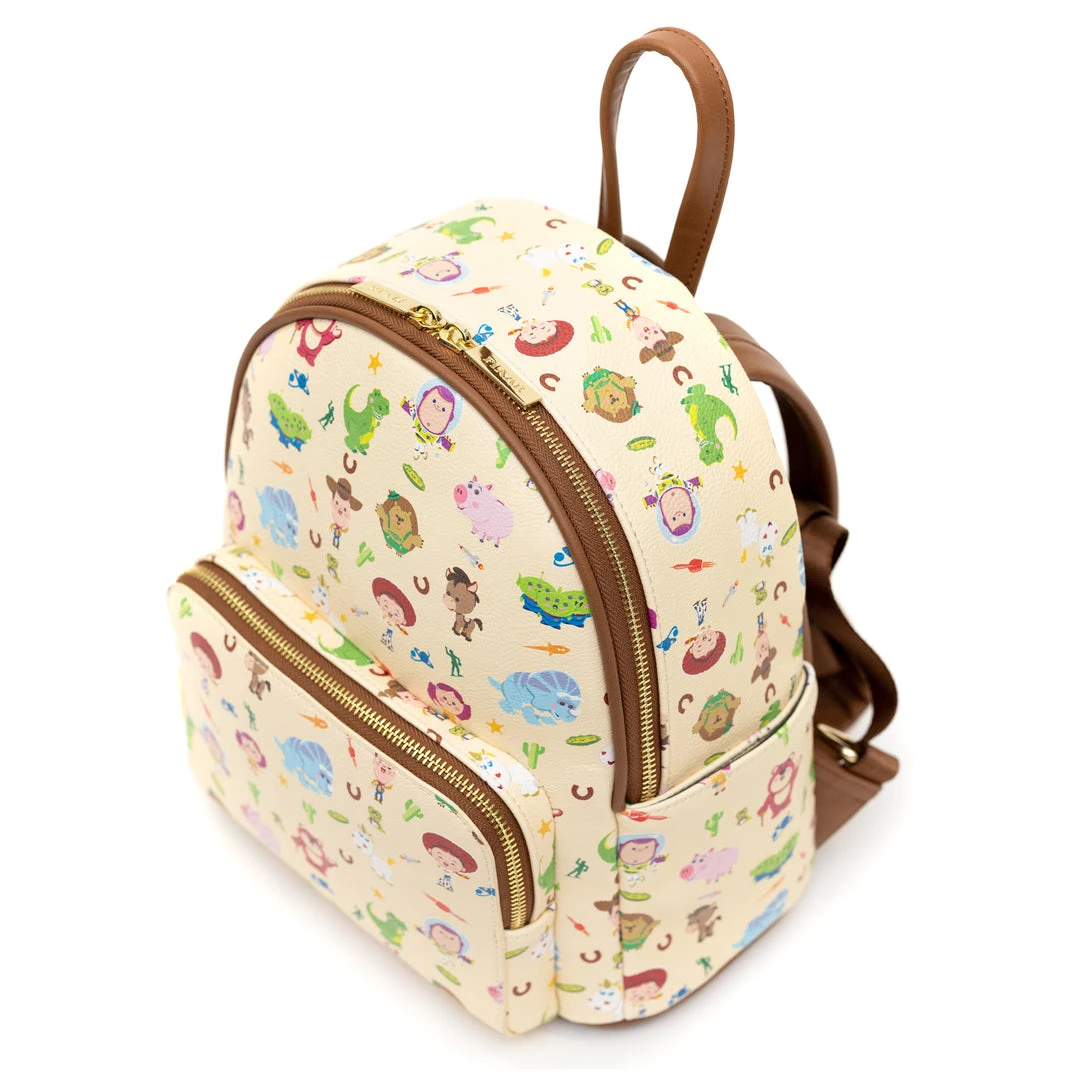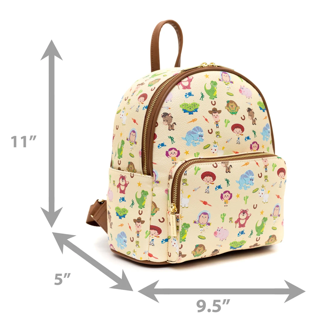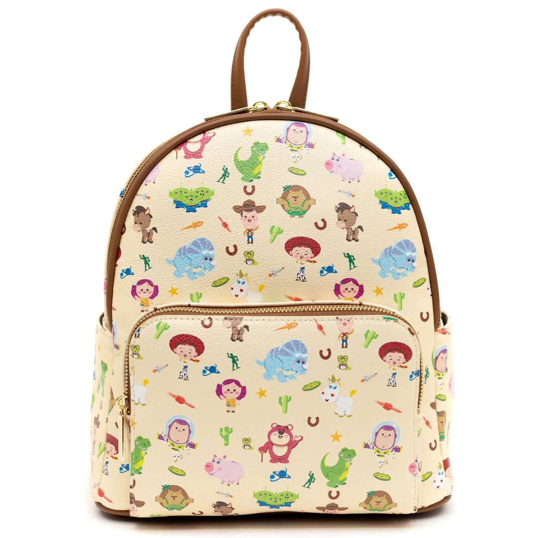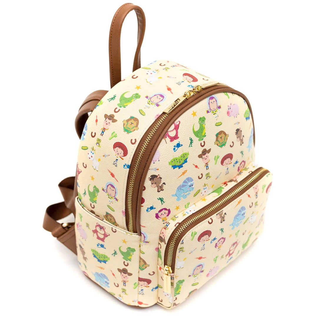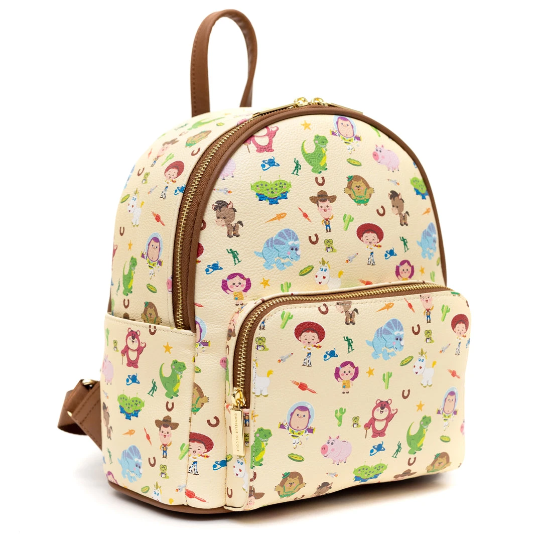 - You’re going to love this cute backpack featuring Pixar Toy Story. This mini backpack features include sturdy gold toned metal hardware, adjustable straps, side pockets, and is made of vegan leather (polyurethane)