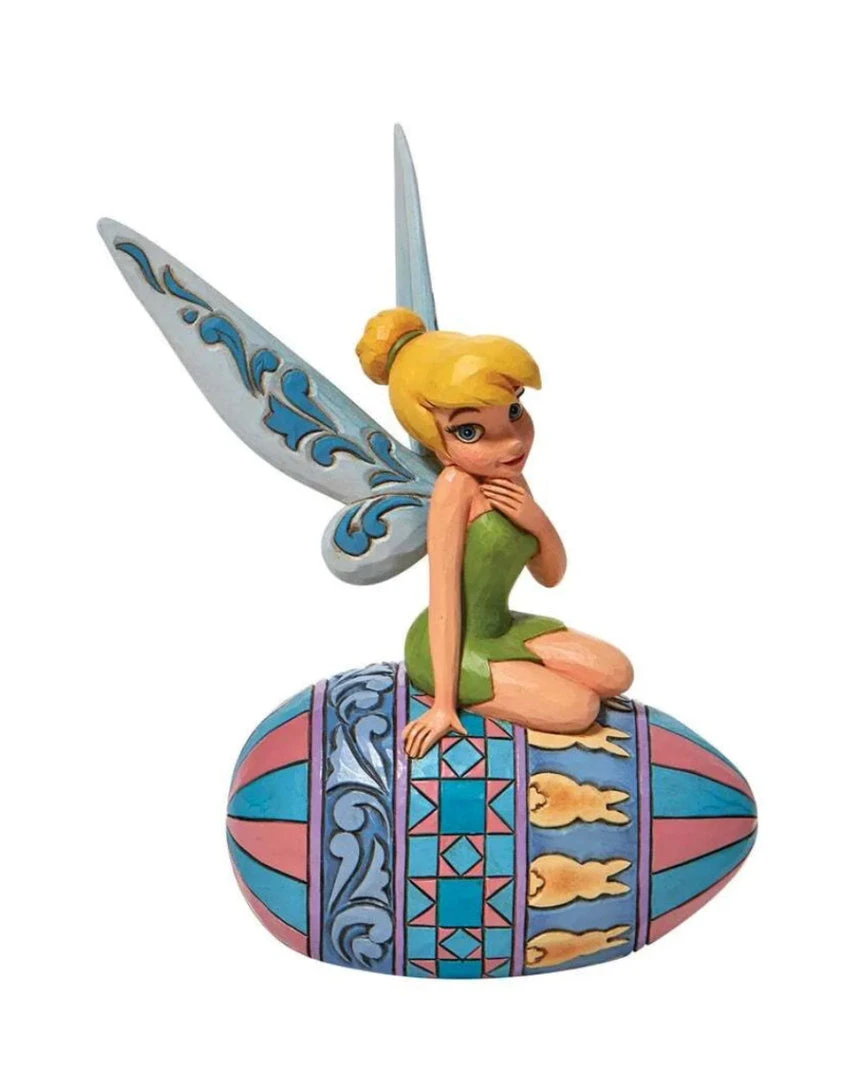 Celebrate this Easter in Neverland with this sweet figurine by Jim Shore. Sitting upon an Easter egg, Tinker Bell awaits Peter Pan or one of the Lost Boys to find her. With unique Jim Shore patterning on the egg, this figurine is a fresh find!