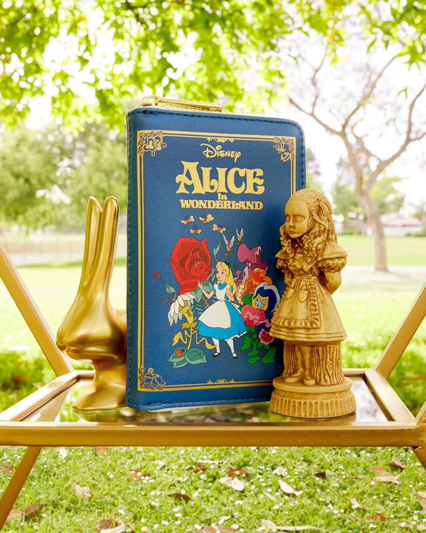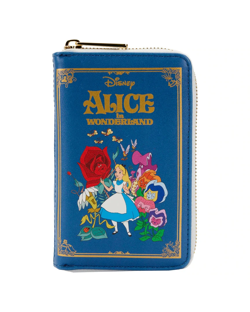 Learn lessons from the flowers with Alice! Take this Alice in Wonderland Book Zip Around Wallet with you on your journeys. This wallet is shaped like the front cover of a book and features Alice in the center, singing with the flowers. This accessory makes for a great complement to any Disney outfit and is perfect for fans who are looking to keep their favorite animated moments close.