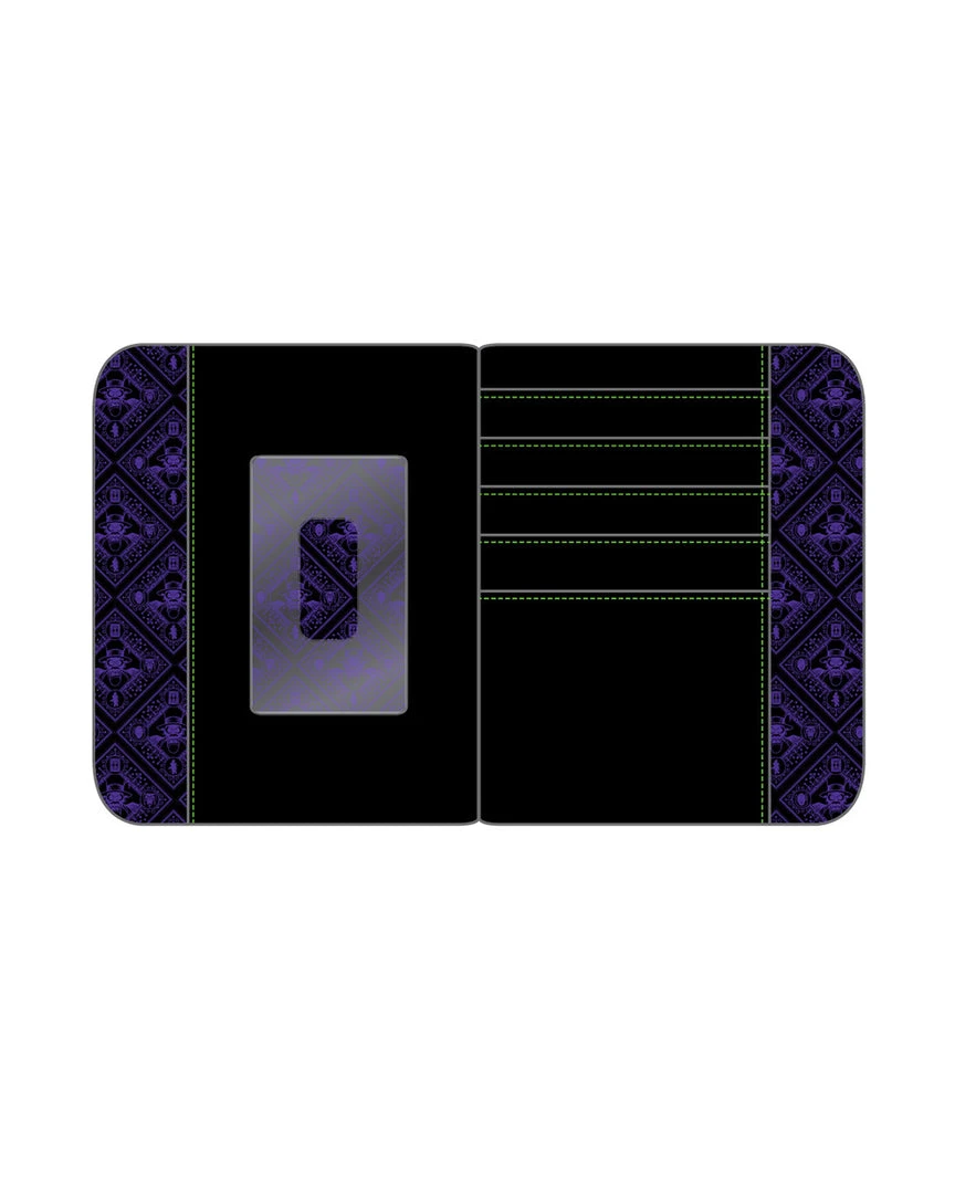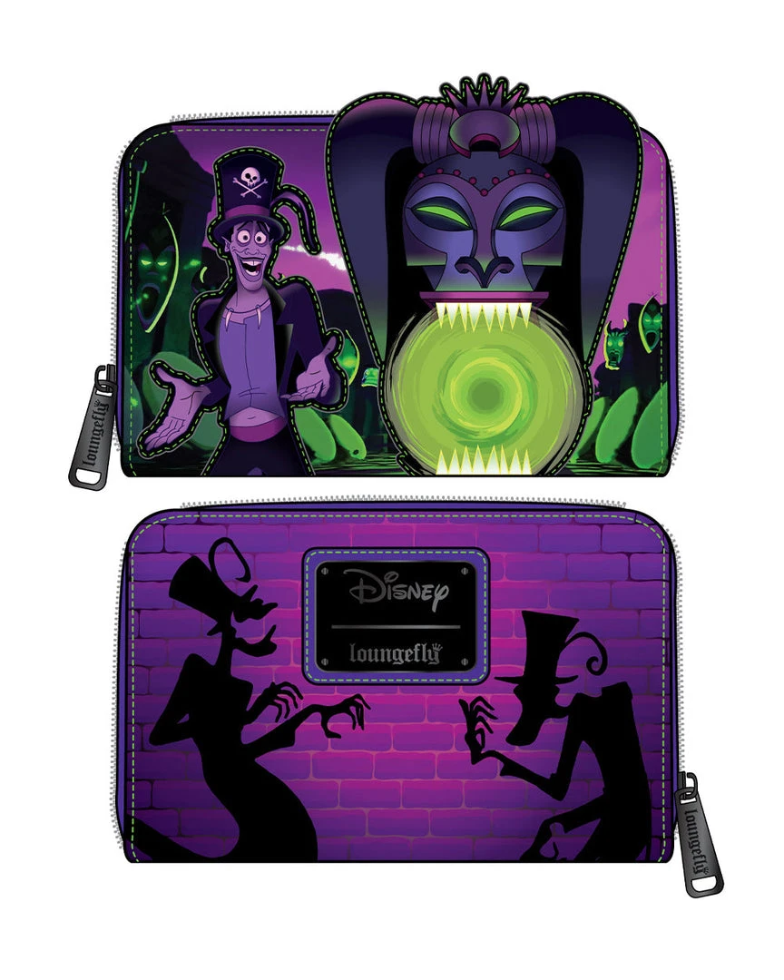 Conjure up a few friends from the other side to help carry you through the day with this The Princess and the Frog Dr. Facilier Zip Around Wallet. On the front, Dr. Facilier stands before the Voodoo Spirit World, its mouth open wide, the portal glowing green with glow-in-the-dark details. The Voodoo Spirit’s eyes also glow green in the dark. On the back, Dr. Facilier and his shadow conspire. This accessory complements any Disney outfit and is perfect for Disney fans wishing to keep their favorite animated moments close.