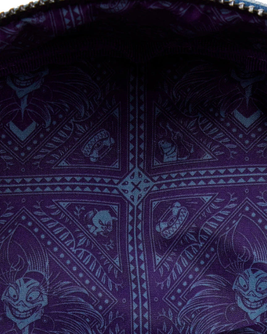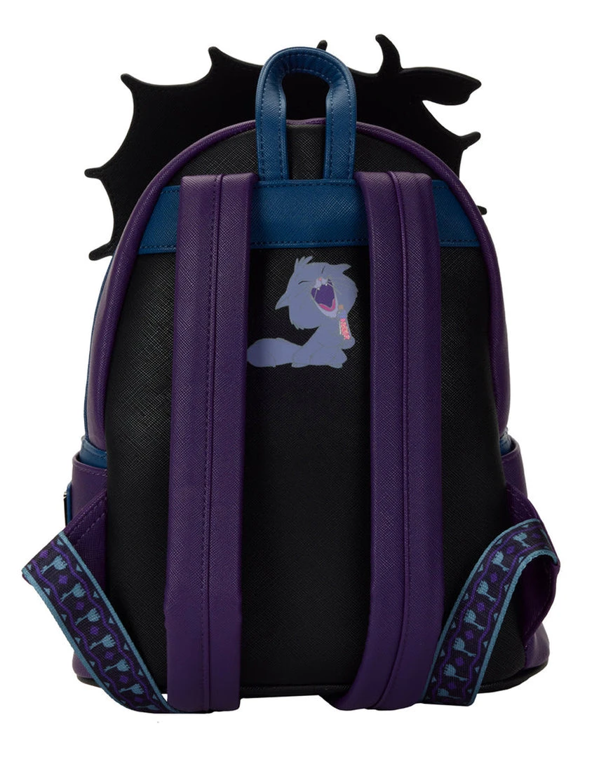 A furious storm has cast Yzma into a rage as she struggles to rescue the potion that will turn Kuzko back into a human. Contain her wrath with this The Emperor’s New Groove Yzma Villains Scene Mini Backpack. On the front of the backpack, Yzma comes to life in applique detail, glaring down and over the image on the front zipped compartment of Kuzko and Pacha, climbing together between narrow cliffs, escaping with the potion. On the back, Yzma poses as a triumphant cat who momentarily manages to capture the potion. In fact, an enamel zipper charm of the potion, in glitter detail, completes the scene. This backpack is a great accessory for any Disney outfit.