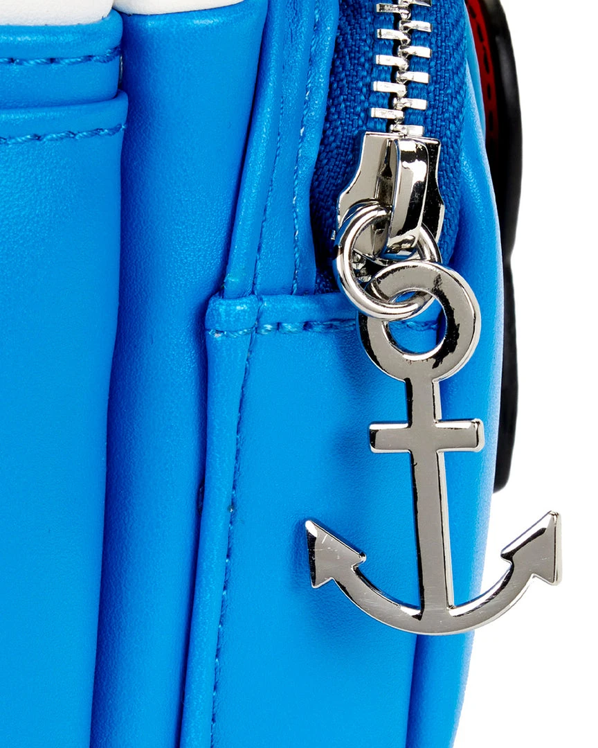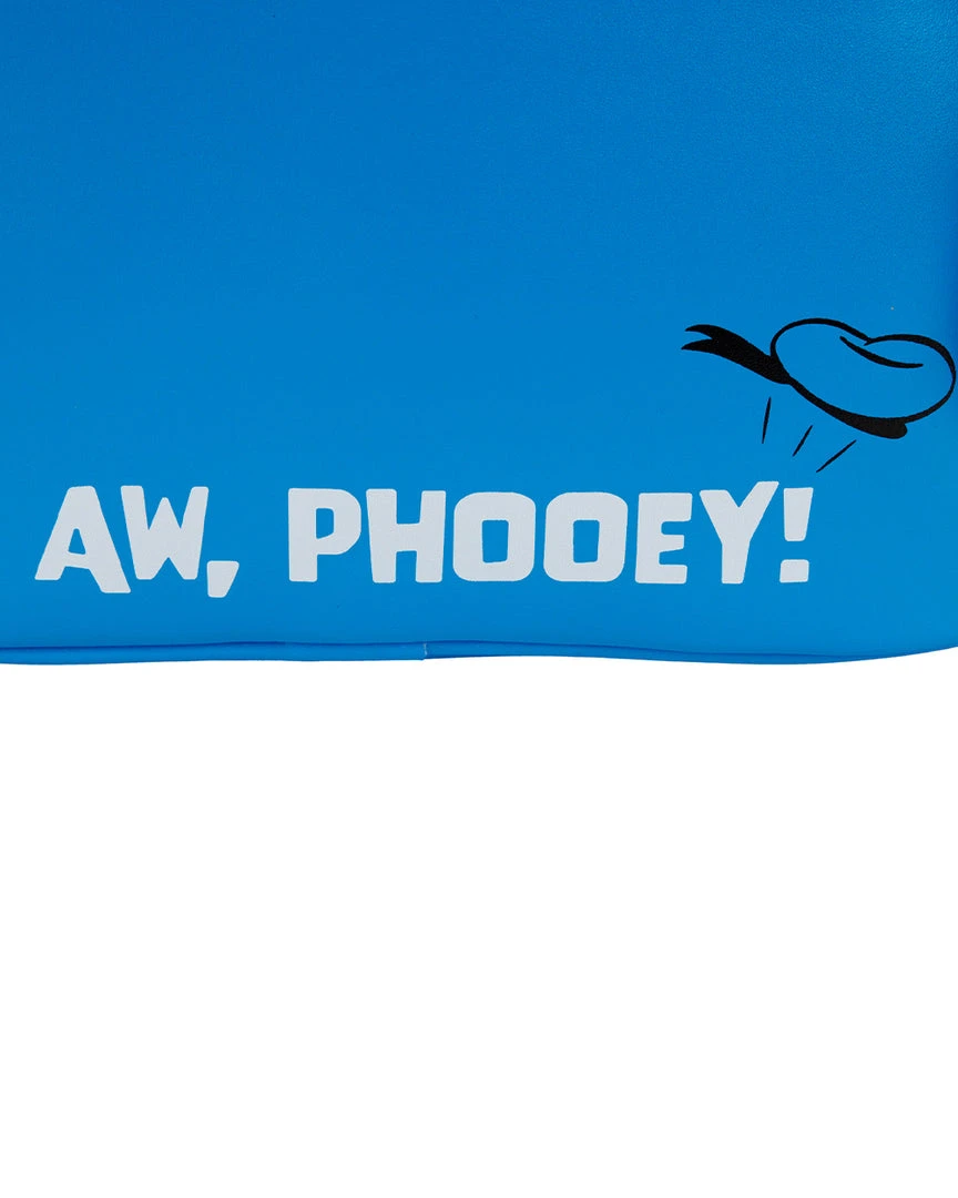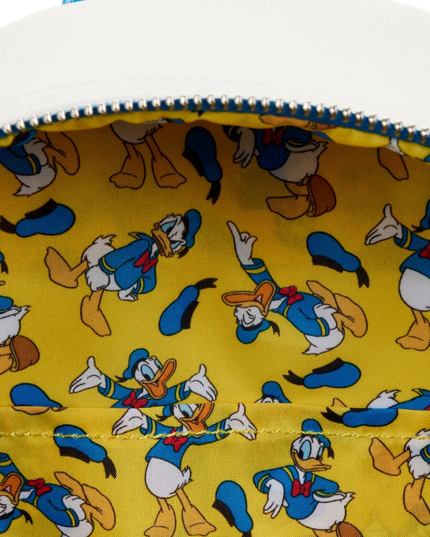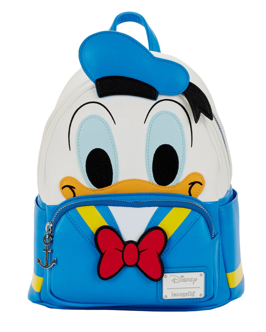 Donald Duck is coming in for a landing to ride with you on your next adventures with this Donald Duck Cosplay Mini Backpack. On the front of the bag, Donald Duck’s face peeks out over the front zipped compartment, which is accented by a bright red bow, with 3D details. The message on the back reads “Aw, Phooey!” This backpack is a great accent for any Disney outfit.