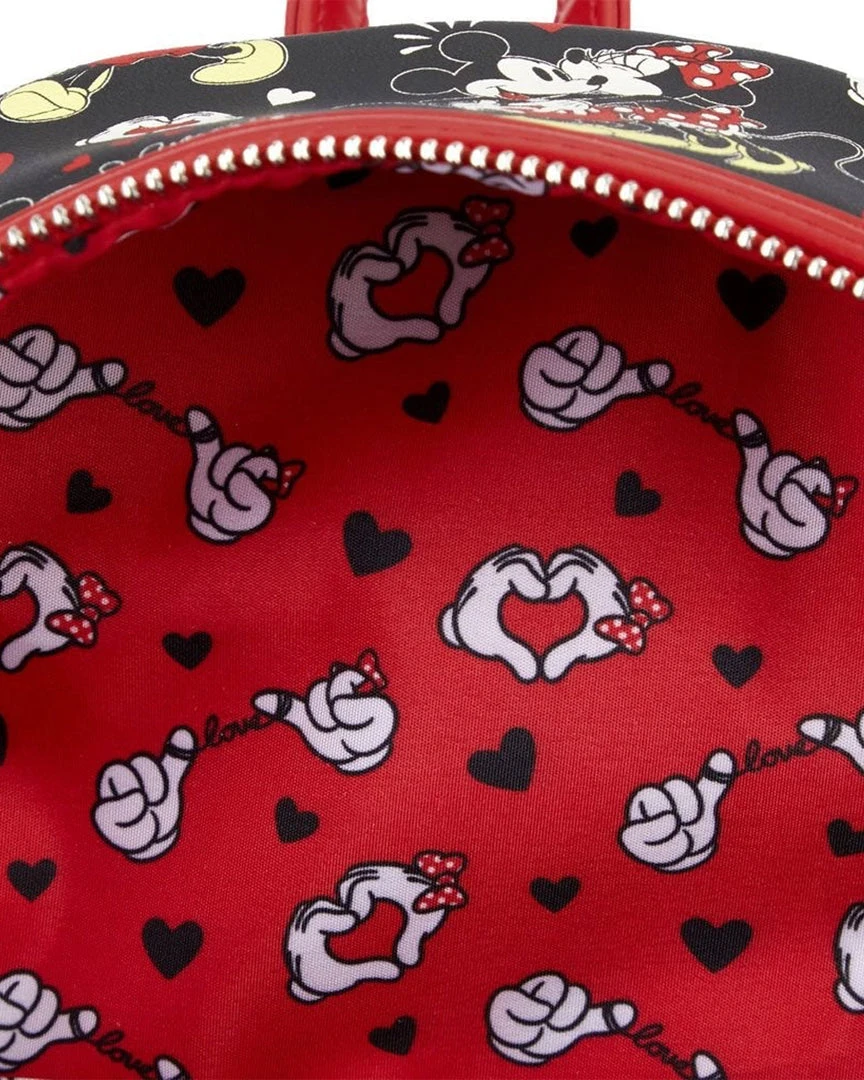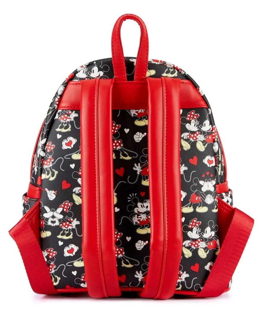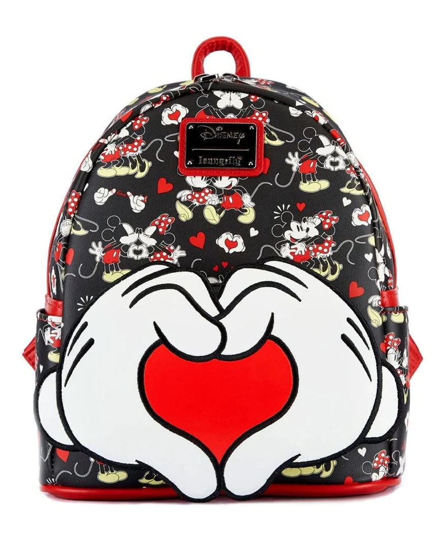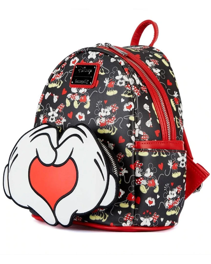 Get them, or yourself, a gift to remember with the special Mickey and Minnie Mouse Love Mini Backpack. The all-over-print features Mickey and Minnie hugging, holding hands, and sharing a kiss among a shower of red and white hearts. The front pocket is designed to replicate their hands making a heart shape. This backpack makes a great gift and addition to any Mickey and Minnie Mouse collection.