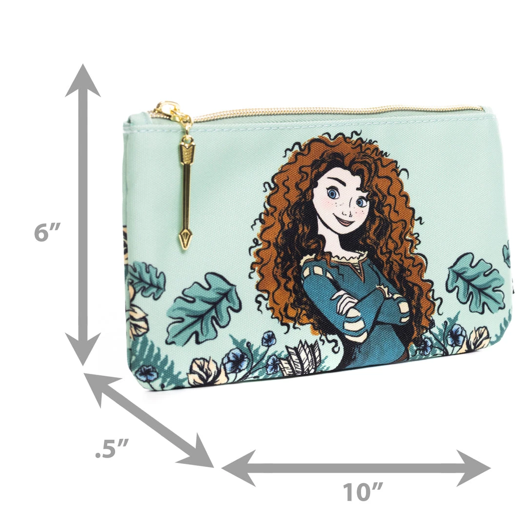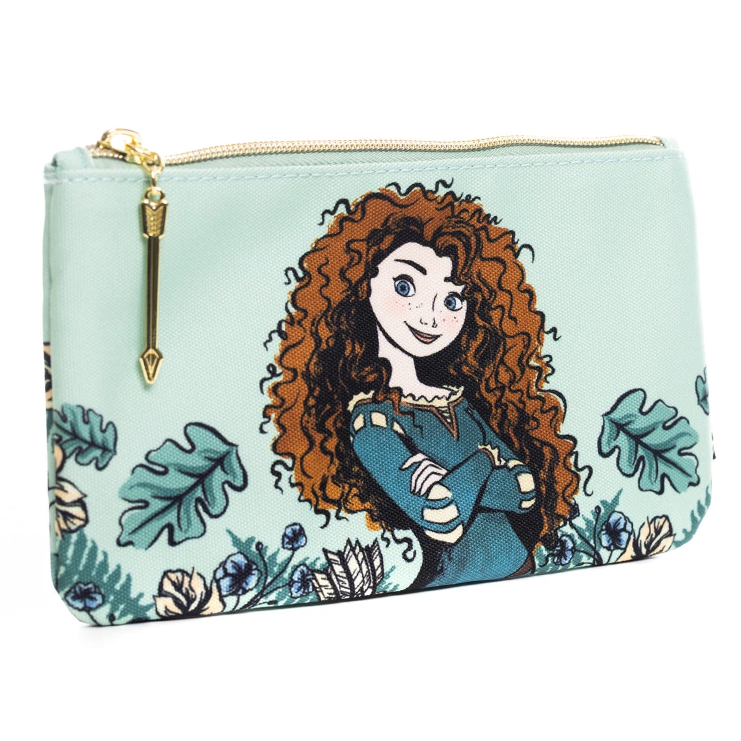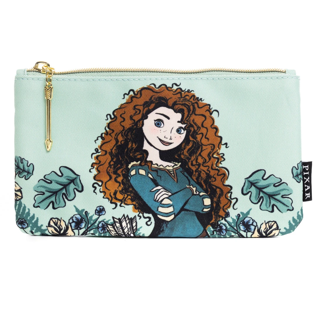 - You’re going to love this cute nylon pouch featuring Disney Pixar Brave Merida. This Loungefly multi-use pouch features include sturdy gold toned hardware, solid matching lining, and is made of sturdy nylon material. Perfect for organizing all your small accessories; charging cables, pens, hand sanitizer, and more!