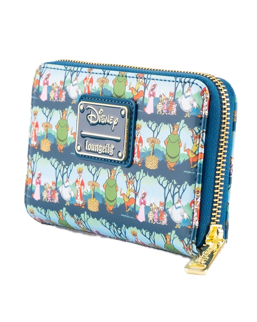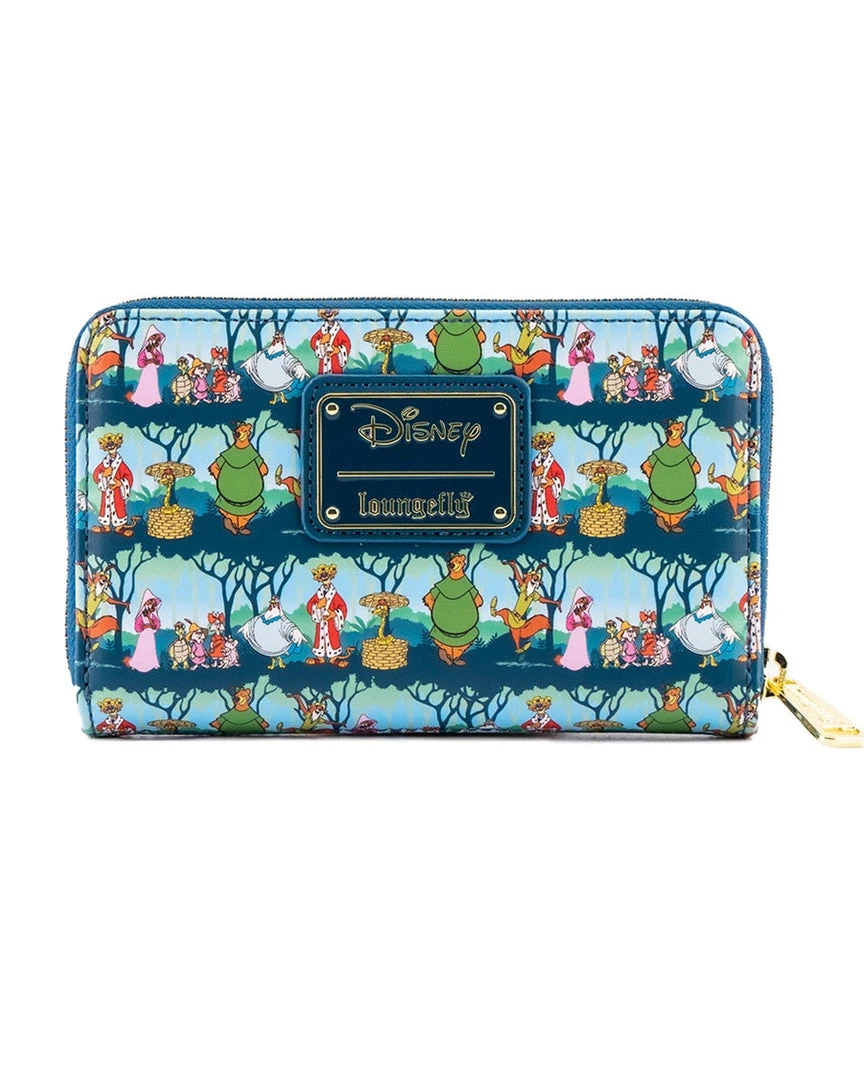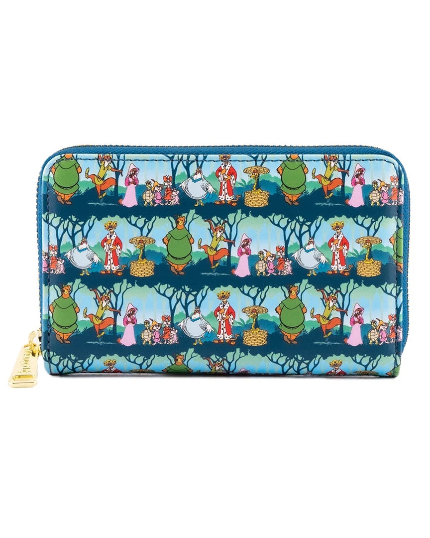 Robin Hood and Little John walkin’ through the forest- oh and there’s Maid Marian, Lady Kluck, Prince John, Sir Hiss, and the children too. There’s quite a commotion in Sherwood Forest since this Loungefly Robin Hood Sherwood Zip Around Wallet has appeared. This wallet is here to steal hearts while you adventure through various lands, and it matches the Robin Hood Sherwood Mini Backpack.
