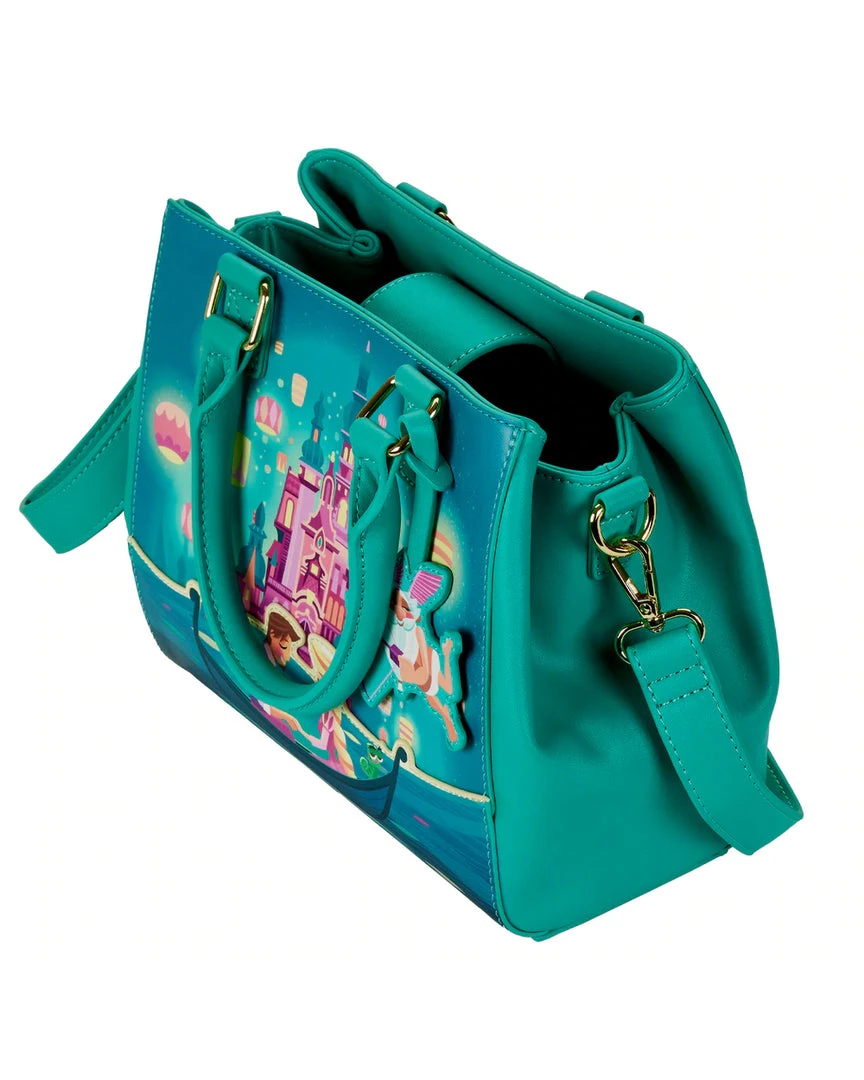 A sky filled with lanterns lights the way as Rapunzel escapes from the tower to search for the truth. Join Rapunzel in her quest by adding this Loungefly Tangled Rapunzel Castle Glow in the Dark Crossbody Bag to your collection.