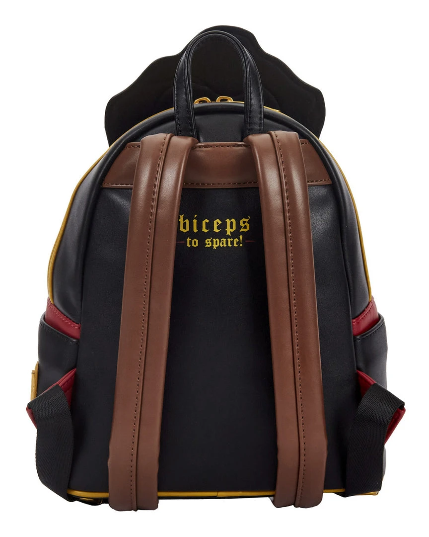 Always flexing, Gaston believes he’s set to win hearts and conquer the day. Make him possessive of your possessions with this Loungefly Beauty and the Beast Gaston Villains Scene Mini Backpack. The backpack depicts a jealous and greedy Gaston, looking down on the image of the Beast reflected in the hand-mirror. From another angle in the mirror, Belle appears with a book, while the townspeople gather in the background. Lettering on the back side of the backpack reads, “biceps to spare.”