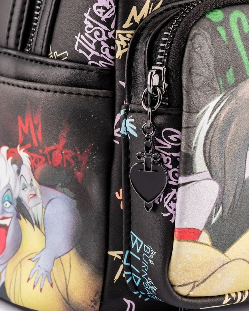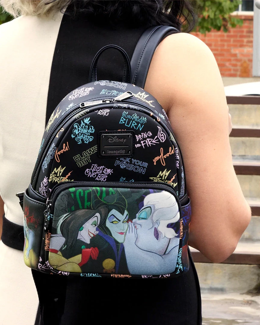 Dare to drop in on the Disney Villains Club. What secrets could the likes of Maleficent, Ursula, and Cruella de Vil be keeping? As a fly on the wall, you can listen in, while your possessions remain safe inside the Loungefly Villains Club Mini Backpack.