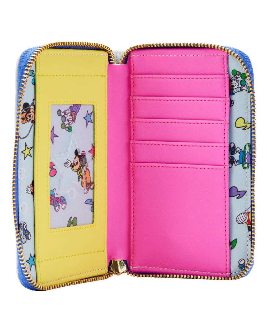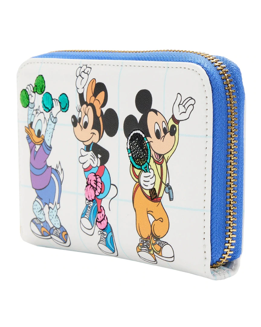 Come on everybody, it’s time to get on your feet! The Loungefly Disney Mousercise™ Zip Around Wallet is here to get you up and moving. Dressed in retro athletic wear, this 1980s-inspired mini backpack features Mickey Mouse, Donald Duck, and Minnie Mouse as they perform their favorite forms of physical activity. On the front, Donald lifts some dumbbells, Minnie performs aerobics, and Mickey holds a tennis racket. On the back, the Mousercise logo is displayed against a grid background. With four slots for holding cards and a clear slot to hold your ID, this wallet has plenty of room to keep your gear safe wherever you go. This nostalgic accessory is perfect for fans who are looking for a fun way to show off one of their favorite Disney memories.