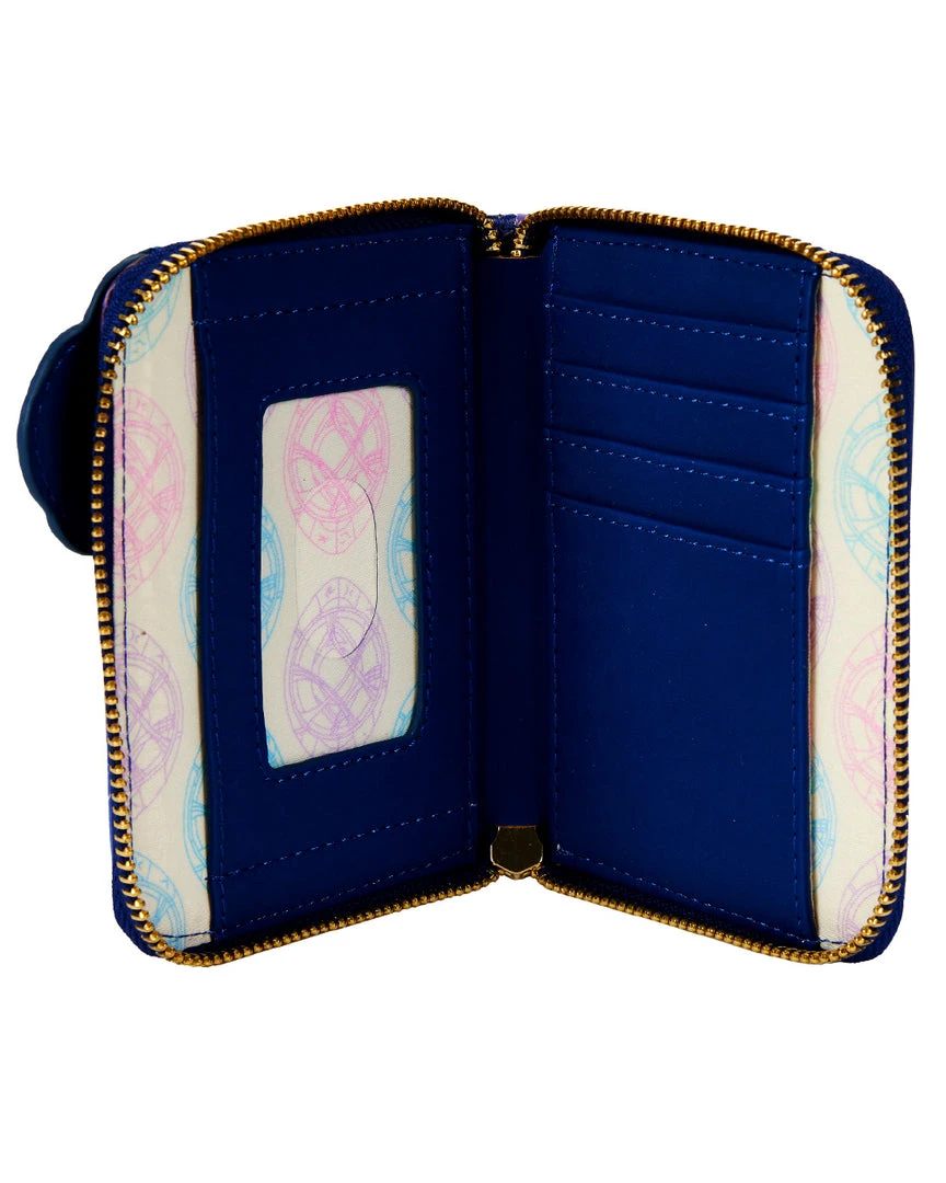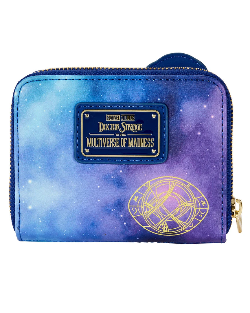 Stop the hands of time to capture this Doctor Strange in the Multiverse of Madness Glow in the Dark Zip Around Wallet. On the front of this zip around wallet, Doctor Strange casts a golden sign that glows green in the dark. On the back, the Eye of Agamotto appears in gold, floating through space and time. When the lights go out, it glows green in the dark as well.